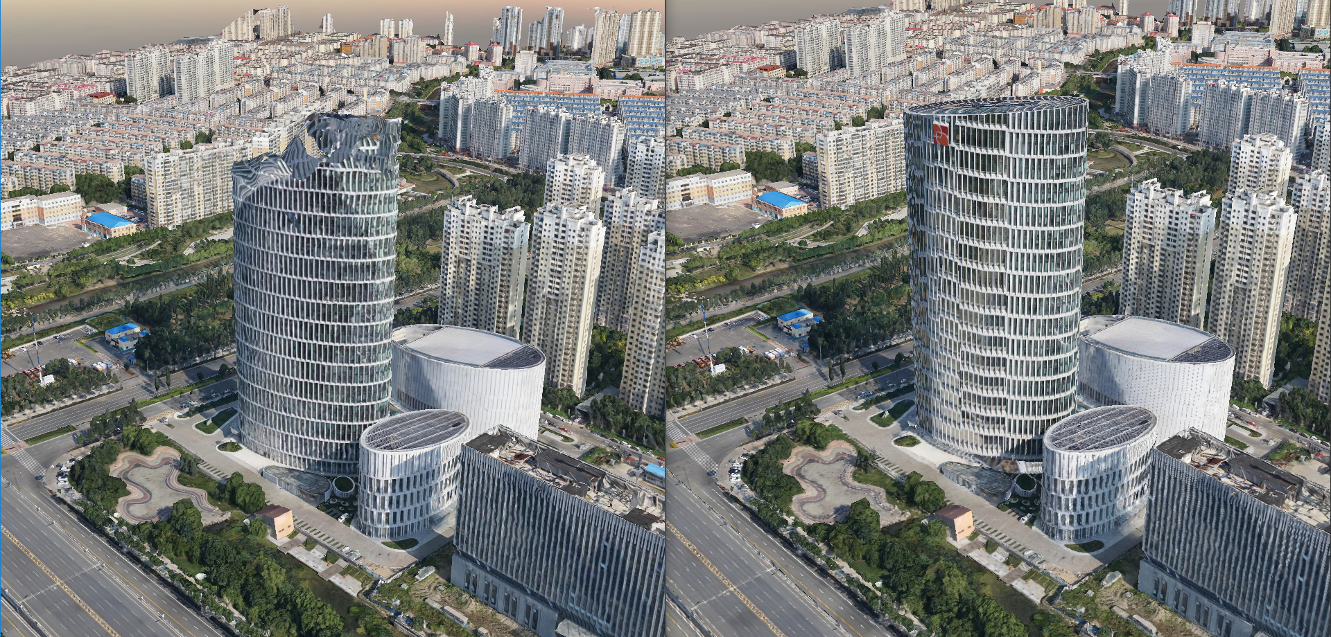 利用航空傾斜影像、地面影像聯合進行單體化建模,解決常規的傾斜攝影方式單體化建模的底部紋理扭曲等問題,同時解決了傳統方式建模的精度不高和真實感不強等問題,進而將傾斜攝影方式建模和傳統建模的各自優點相結合。我們累計完成的精細單體化建模,覆蓋大型商超(綜合體)、大型機場、古建、水壩、廠區、高鐵車站、室內建模等多種類型的建筑設施。